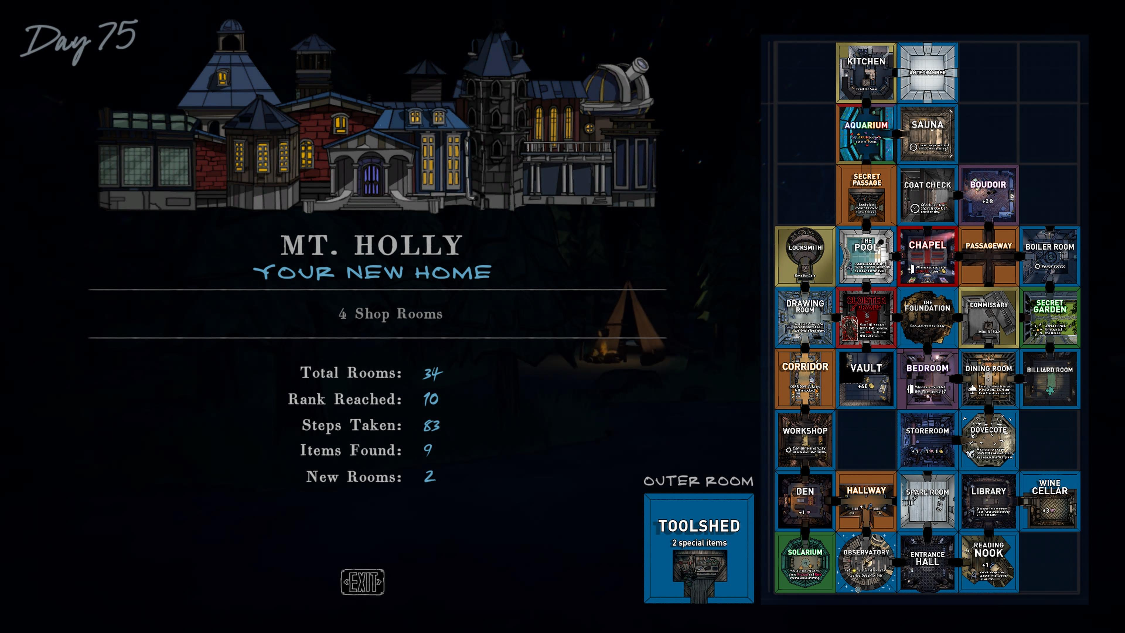 Playing in first-person as Simon, the young heir to the estate Mt Holly, you investigate the strange backstory behind the family, unlocking the secrets of the house as you go. He needs to reach Room 46 to inherit the house and the family's wealth. The catch: The layout of house resets every day.